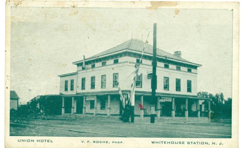 White House Station ![]() Station 1906 Listed on the National Register of Historic Places, this 1892 building was a former NJ Central Railroad Station. Designed in the H.H. Richardson style by Bradford Gilbert, it is characterized by heavy, rough-cut stone exterior, broad roof planes, and arched entryways. Painstakingly restored by the community in 1981, it now serves as the Readington Township Public Library. A visit to the "ladies waiting room" is a must! ![]() R.R. Station at White House Station, N.J. ![]() ![]() Public Stage ![]() ![]() Main St., Whitehouse Station, NJ June 5, 1907 ![]() Whitehouse Station 1905 ![]() 1915 The Rockaway Valley Railway, also known as the New Jersey & Pennsylvania Railroad, had a short life, closing down freight and passenger operations in 1914. It ran from White House to Morristown via Oldwick, Pottersville, Peapack, Ralston, Menham, Brookside & Washington Valley. The railroad had its own station at White House (right side). The Central Railroad of New Jersey, with which the NY&P connected, had a separate freight station (left) and a stone passenger station (left foreground). ![]() Birdseye view Pickell's Mt., Whitehouse Station 1905 ![]() Post Office 1906 ![]() 1910 ![]() Voorhees Building ![]() Voorhees Building colorized ![]() Voorhees Building ![]() Main St. looking North ![]() Main St. looking South ![]() Main St. looking South ![]() View of Town Looking North 1907-1912 ![]() South Main St. 1915 ![]() 1915 ![]() North Main St. 1927 ![]() Main St. 1947 ![]() Main St. 1950s ![]() 1907 ![]() Union Hotel V.F. Roche, Prop. ![]() Church ![]() Methodist Church 1906 ![]() Reformed Church 1908 ![]() Refromed Church interior 1905 Misc. ![]() Mountain View Whitehouse ![]() Post Office and General Store of John Lane ![]() Ryman Farm 1905 Became the Ryland Inn ![]() 1906 ![]() ![]() ![]() The Ryland Inn, built in Readington on the New Jersey Turnpike, which was chartered in 1806 and familiarly called “the old highway” from New Brunswick to Easton, was owned by Col. David Sanderson around 1850. Part of a collection of buildings for a blacksmith, farrier, and stables that served early stage coaches, the inn was purchased in 1905 by Kencyl Llwelyn Ryman and ultimately passed to his granddaughter, Phyllis Black, who ran a notable restaurant there for many years. The building, sited on a large farm complex, is described in part in the County’s 1979 Sites of Historic Interest as a two-and-a-half story Victorian Gothic structure with smaller one-and-a-half story wings. |